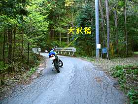 | 起点から約300mほど進むと大沢橋(写真左)となり渡っていきます。実は右手の山側には約150mほどの距離で大野線が平行しているのですが、残念ながら厚い樹林層によって景色的なものは何もありません。大沢橋からはやや勾配が大きくなっていき、起点から約500m地点(写真右)まで進むと敷地に大量の木材を積んだ炭焼きの会社が現れます。 | ||||||||||||||