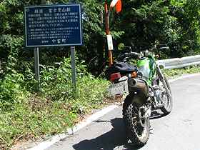 | 柳川地区を過ぎると家屋はなくなります。道幅は約2車線弱から約1.5車線強。林道としては広い部類に入り、4輪同士でも支障なく擦れ違えます。約500m地点(写真左)まで進むと右カーブの側壁に開設標(写真右)が埋設されており、これ以降も数多くの開設標が出てきます。 |