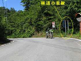 | そして起点から約2.7キロ地点(写真左と写真中央)まで進むと道の左側に林道富士見山線の看板(写真右)が現れます。同地点は鰍沢町と中富町の境界ともなっており、看板に表記された管理者名も中富町になっています。ここからは鰍沢町側から中富町側へと入って林道富士見山線を進みます。 |