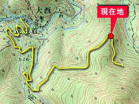 | と、林道の杭から約2.9キロ地点で倒木。倒れている木はそれほど太くはないのですが、押しても引いてもビクともしません。林道の杭に書かれている延長2952mからしても終点は近いので、ここからは歩いて行ってみることにしました。 | ||||||||||||||