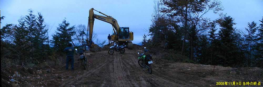 2008年11月9日 この林道へ来たのは約2年ぶりでしたが、当時の終点の様子と大きく違っていて驚かされました(道も少し延伸したようです)。 同地点の約900mほど西側には京戸岩崎山林道から分岐した京戸山林道が延びてきており、もし繋がれば笹子峠側から一気に笛吹市一宮町側へ抜けられるようになり面白いのですが、果たして繋がるのでしょうか?ちょっと期待してしまいます。 |