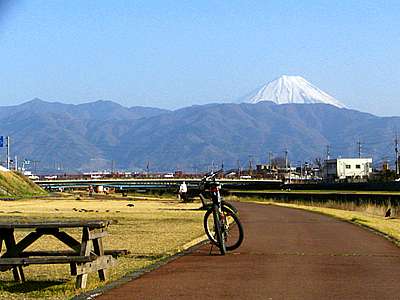16時25分 自宅から約15分。 荒川サイクリングロードを南下して甲府市音羽町付近。 当日の最高気温は20.7度とポカポカ陽気。 風はやや強いものの、多くの人々が春の陽射しを楽しむかのように歩いていた。 |