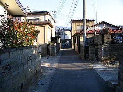 16時48分 荒川サイクリングロードを離れて一般道へ。 上今井町付近の狭い路地。 何処へ出るのかは知らない。ただ東へ進めば小瀬へ出ることに間違いはないはずだ。ここからは適当に東へと進んで行く。 |