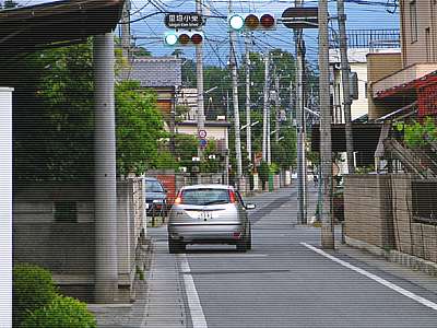 善光寺2丁目の里垣小学校東交差点。 今回は信号を突っ切ってそのまま東へと進むが、、、 |