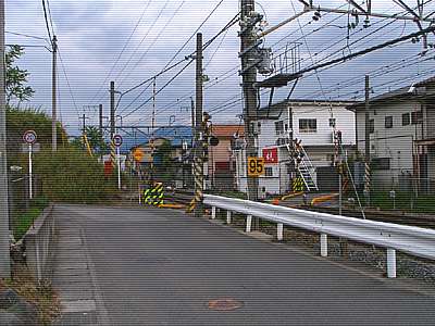 | その正面は宮前踏み切り。 今回は踏み切りの手前を左折して東へ。 |