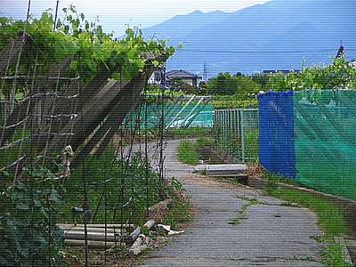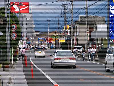 和戸町?向町? 適当に走ってきたので場所は分からないがそんなところだろう。 右手となる南側の遠くには甲府バイパス沿いのドンキホーテが見えている。 |