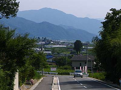| 境川村に入ったところで脇道を上ってみた。 かなりの急坂の続く道で、途中からは右に左にと切り返しながらグングンと標高を上げていく。 背後に広がるのは中道町方向か? |