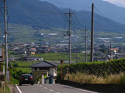 塩山市からは勝沼町方向へ。 勝沼ぶどうの丘を過ぎるころには午後3時を廻っている。 |