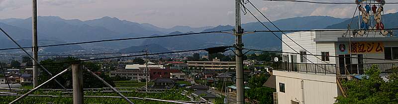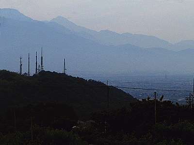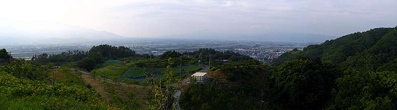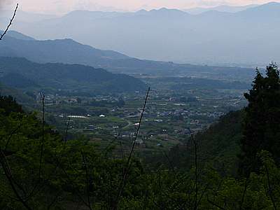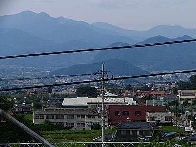 | 西側には山梨市方向。 肉眼ではもっと綺麗だったのだが、写真だと霞で上手く写らないのが残念だ。 |