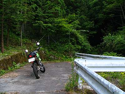 国道358号の旧料金所跡 ここで県道36号へと右折。一路、旧三珠町へと向かう。 |