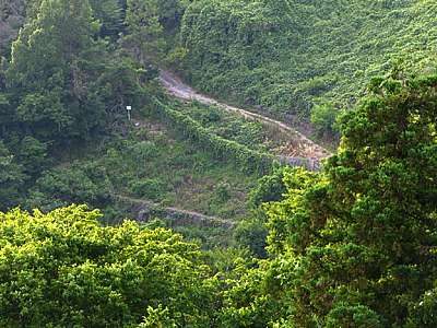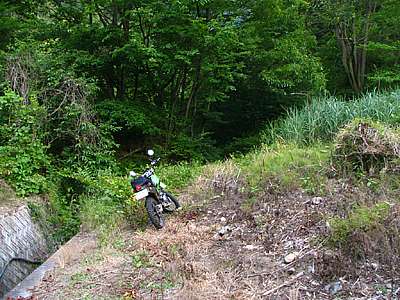 一歩間違えると10mくらい下の沢まで落ちそうだ。 こういった道は守備範囲外であり、君主危うきに近寄らず、ということで引き返すことにした。 |