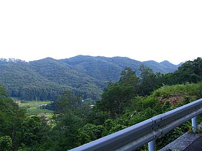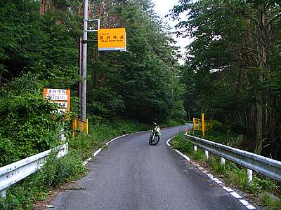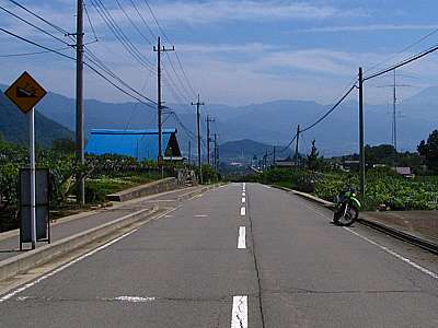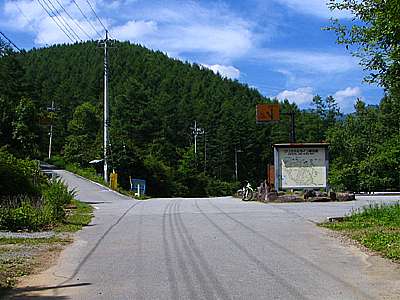 | 午後5時50分 須玉町と高根町との境界で、ここからは高根町へと入っていく。 景色が良いといいのだが、同地点からは木々が邪魔して殆ど景色は見渡せない。 |