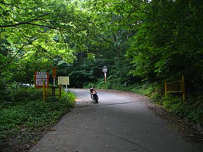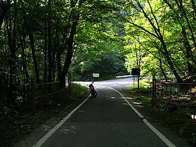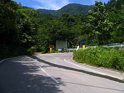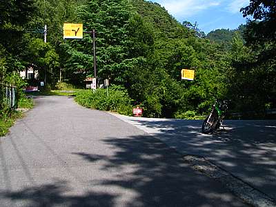 | 午後3時00分 荒川林道の終点へ到着。 同地点は黒平地区で、人が住む集落としては甲府市で最も北に位置する。と、同時に荒川林道、池の平林道、御岳林道のそれぞれの起点(終点)でもあり、今回はここを切り返して池の平林道へと進んでいく。 |