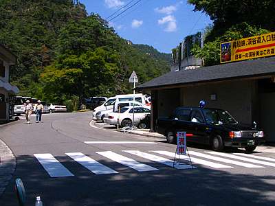 | 午後12時44分 御岳昇仙峡グリーンラインの県営駐車場(無料)。 盆休2日目ということもあり多くの人々で賑わっている。駐車場は既に満杯。入り切らない車は道に停めている状態だ。