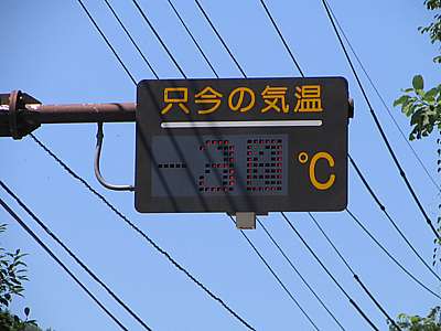 午後12時51分 気温は30度。 盆地よりは涼しいがそれでも蒸し暑い。 ちなみに当日、甲府の最高気温は35.2度だったそうだ。 |