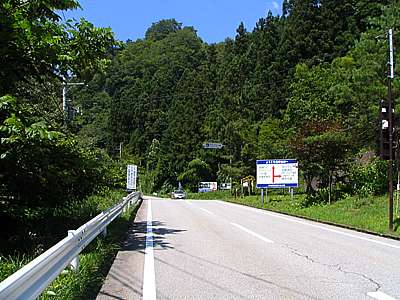 | 午後3時03分 景色らしい景色のない荒川支線を上って水ヶ森線と接続。 右へ曲がると約2.7キロで一ツ木水ヶ森線との分岐点があり、最終的には太良峠へと抜けていく。 |