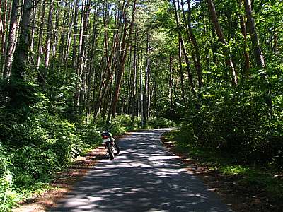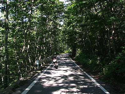 午後2時00分 起点から約2.3km。 周辺には白樺が目立ち、ちょっとした高原的な雰囲気だ。 ちなみにこの辺りは秋になると素晴らしい紅葉が広がっている。 お勧めできる紅葉スポットだ。