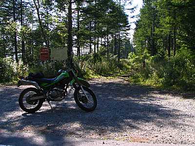 | 午後1時29分 御岳林道の終点。 同地点はY字路となっており、左直進的に進むと池の平林道。 今回は左の荒川林道を進んで奥仙丈林道へ向かう。 |