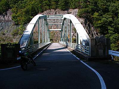 午後1時38分 県道23号との接続地点となる孫女橋。 右折して北杜市須玉町の江草方面へと進む。 |