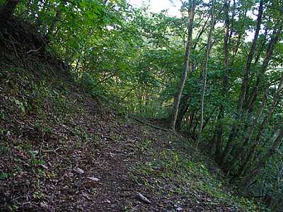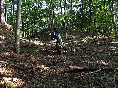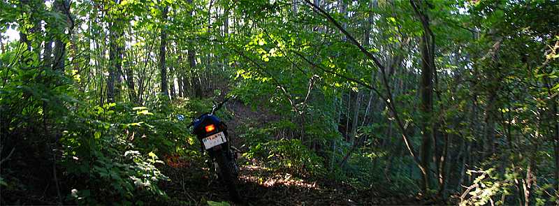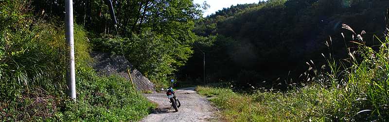 | 午後3時15分 枝道へ入ってみた。 途中からはかなりの急登で、軟弱な路面にタイヤは何度か泥を巻き上げた。 |