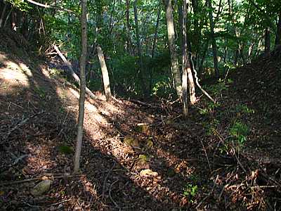 | 午後3時36分 分岐点から約200m。 最後は道なのかどうかも分からぬ踏み跡が一気の下り坂となって落ち込んでいた。これ以上は進んでも意味がなさそうなので、ここで引き上げることにした。 |