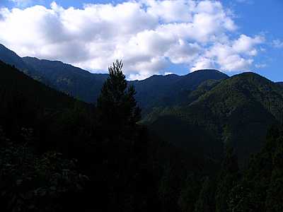 15時27分 剣抜大洞線は月夜の段がピークになっている。 ピークの標高は1130m前後。 下っていくと「境橋」が架かっており、その手前には月夜の段の小屋が建っている。 戦後まだ間もない昭和22年。開拓のため18戸が入植したが、苦しい開墾作業の甲斐もなく、その2年後には全戸が下山を余儀なくされているとのことだ。 メルヘンチックな名前とは裏腹に厳しい土地柄のようである。 それにしても、ここ何年かで小屋はすっかり痛んでしまった。 下手をすると倒壊しかねない状態であり、南部町には補修を望みたいところである。 |