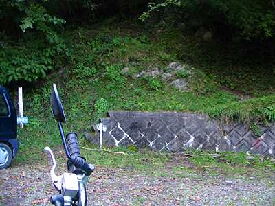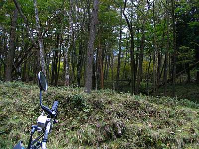 | 15時22分 月夜の段へ到着。 ちなみに「段」は山の中の平な部分を指すという。 つまり、昼でも月明かりくらいの光しか射さない場所、というのが月夜の段の意味だそうだ。 なるほど確かに周囲は平坦な地になっている。 今でこそ或る程度伐採がなされ薄暗さはそれほど感じないが、しかし車道としての剣抜大洞線が出来たのは昭和60年代以降のことである。それ以前は人が足を踏み入れることさえ滅多にない場所だったに違いない。 |