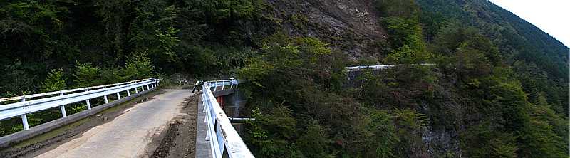 | 14時40分 剣抜大橋を渡る。 標高は810m前後だろうか。 起点からだと既に600m近くは上っており、谷側には僅かだが眺望も広がっている。 |