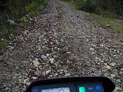 15時20分 ジャリジャリ.....ジャリジャリ。 ススキ道が現れるといよいよ南部町側の剣抜大洞線も終わりに近づいてくる。 |