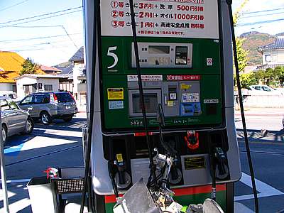 | 2007年11月13日。 朝からの素晴らしい快晴。 陽射しに誘われて久々に白滝林道へ行ってみることにした。 ただこの日は18時から予定があるので、遅くとも17時までに自宅へ戻らなければならない。ということで自身としては珍しく早朝の10時35分に出発(早朝でもないか)。 午前10時41分 出掛けに近くのセルフスタンドでガソリンを入れると142円/l。 先月より6円も上がった。高くなったものだ。 |