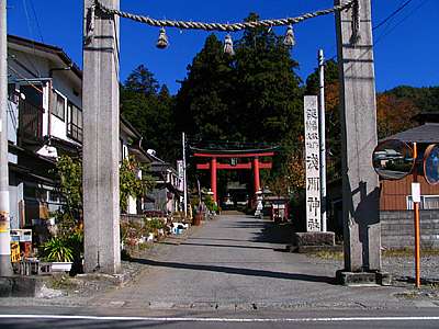 | 午後12時10分 河口湖野猿公園前を抜けて浅間神社へ到着。 白滝林道はここか、その約100mほど南にある河口浅間神社前交差点を東へと入っていく。