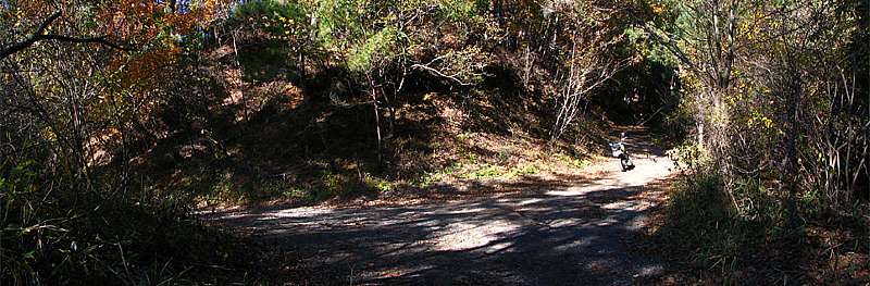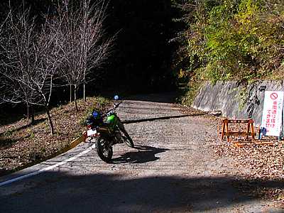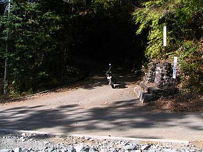 | 午後12時56分 なお当日の同地点には「この先のゲートは閉まっています。通り抜けできません」の看板が立っていた。 進入禁止ではなく、通り抜けできませんの文字に、んじゃ通る分には構わないのね、と勝手に解釈。まぁ、ウマも横に外されていることだし、と上ってみることにした。 |