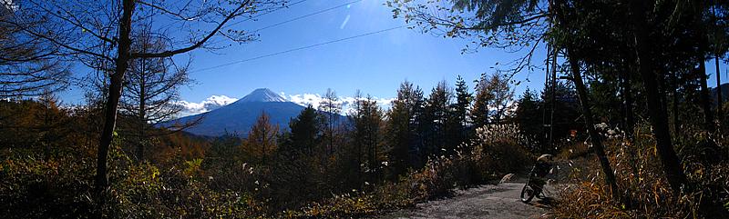| 午後12時40分 暫くは舗装路が続く。 道は至って平凡だが、南西側に広がる富士山や河口湖を見ながら上っていく。 |