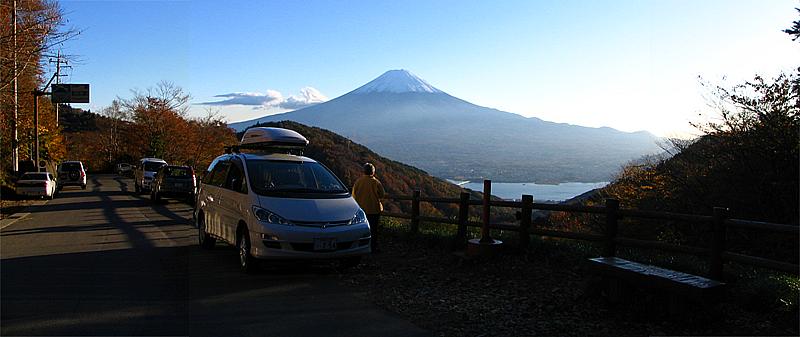 午後3時45分 最後は天下茶屋の建つ御坂峠へと上ってみた。 書くまでもなく、太宰治が天下茶屋へ逗留中「富士山には月見草がよく似合う」と詠んだ場所だ。 山梨では非常に有名な峠だけに、一息ついていた僅か30分ほどの間に何十台という車輌が上ってきては写真を撮っていた。 |