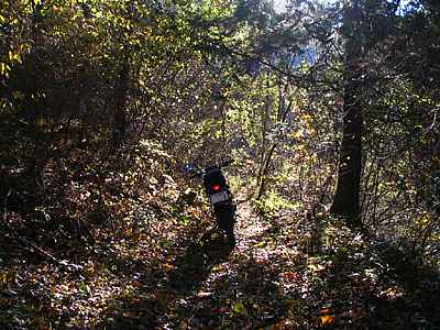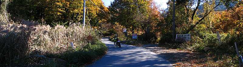 午後12時10分 程なく起点へと到着。 写真では色づいているように見える木々も実際にはやや赤茶けている。紅葉を狙ってきたわけではないが、時期的には1週間くらい遅かったようだ。 |