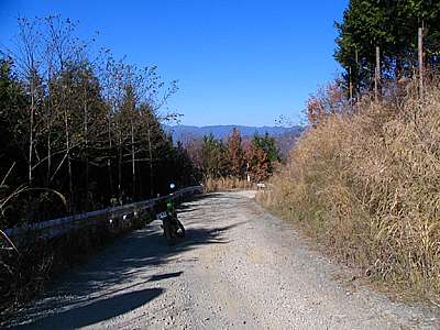 午後3時15分 ブルドーザーから歩くこと約200m。 道には3m近い盛り土がされており、その先は約50mほどで道が途切れ終わっていた。 GPSを持っていないのでハッキリとは分からないが、二本木山の北東1キロから1.5キロといった所ではないだろうか。 なお京戸岩崎山林道は甲州市の勝沼町側からも開設工事を行っている。甲州市側は5年前に行ったきりで現在がどのようになっているかは知らない。しかし直線距離としては残り1、2キロといったところではないだろうか。繋がれば延長もそれなりにあり、景色も良いので楽しめそうな林道だ。 |