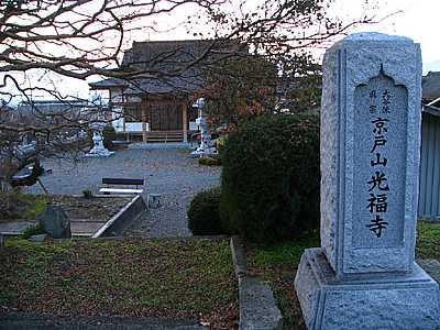 | 午後4時35分 なお本当の京戸岩崎山線の起点は笛吹市一宮町千米寺からである。 県道34号沿いにある「甲斐路ぶどう園」と「共選所」バス停の間を東へ入ると京戸山光福寺が建っており、この南東沿いの道に古びた林道の杭が立っている。 ただ周囲には多くの家屋が建っており面白くはない。 ここから入るかどうかは単なるこだわりだ。 (了)