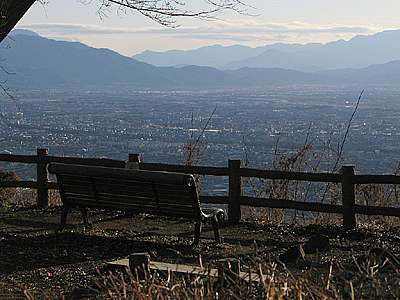 午後3時04分 お馴染みの見晴台に到着。 僅かに雲はあるが快晴。 南側にはパノラマとなった甲府盆地が広がっている。