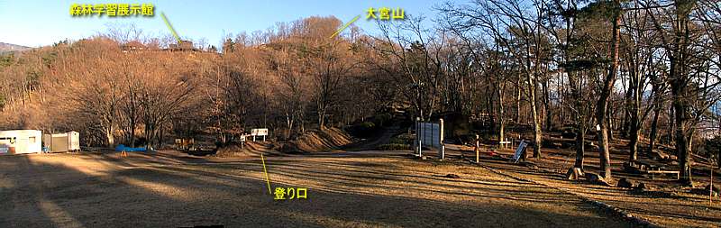 午後4時00分 さてここからは大宮山の山頂へと登っていく。 登るといっても裏手なのでアッという間に登れてしまう距離だ。 なみに登り口は幾つかあるが、今回は自由広場の横から登っていくことにする。 |