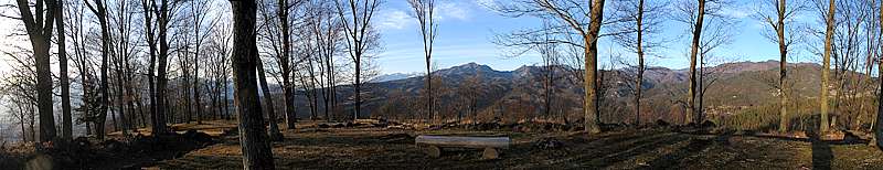 午後4時10分 登り始めて10分で大宮山665.2mの山頂へ到着。 山頂は広い台地状に切り開かれており、ここからは360度の景色が広がる。 北側の正面は曲岳1642.4mと茅ヶ岳1708.6mだろうか。 左手には八ヶ岳も顔;を覗かせている。