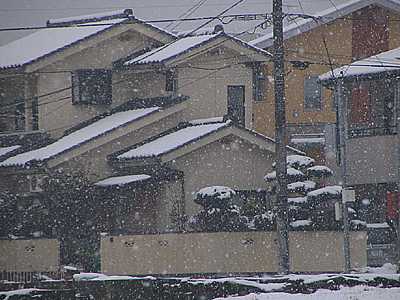 2008年01月23日。 今年初の本格的な降雪。 朝からの雪は夕方まで降り続き、盆地では5センチくらいの積雪となった。 |