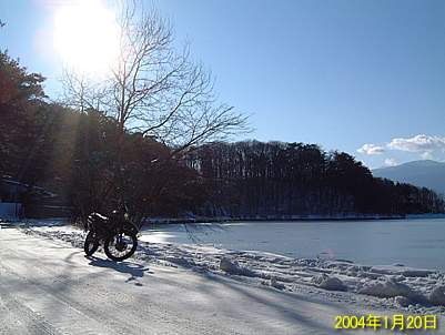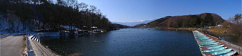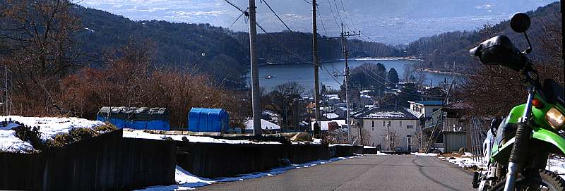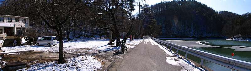 午前11時56分 和田峠の直ぐ先にある千代田湖。 千代田湖の標高は555m。 寒い年には薄く結氷している千代田湖も、今年はまだその兆候がみられません。これも温暖化の影響でしょうか。 |
