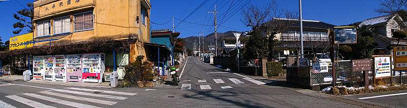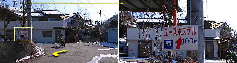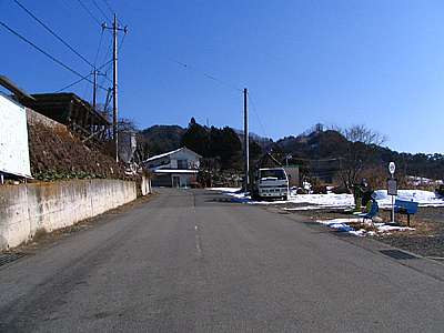 | 午後12時00分 和田峠から金子峠までの距離は約2キロ。 八千代商店の東側を北東へ進んで行くとほぼ一本道です。 ちなみにこの道はバス道で、山梨交通バスが運行しています。 バスで来る場合は終点の上帯那(かみおびな)バス停で降りると約1キロで金子峠へと至ります。1ヶ所だけ分岐点がありますが、その場所を含め甲府ユースホステルの看板があるので、まずは甲府ユースホステルを目指すといいでしょう。