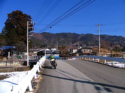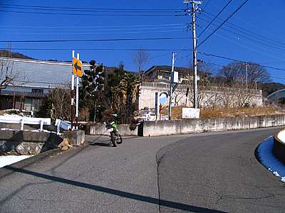 午後12時17分 金子峠に立つと左右の道に分かれ、淡雪山へ行くには左の道へと進みます。遙か以前は右の道もバイクなら塚原町まで下って行けたのですが、現在は遊歩道になってしまったので一切の車輌が進入禁止です。 |