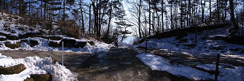2008年01月25日 一昨日とは打って変わって朝からの快晴。 残雪は気になったものの、兼ねてから行ってみようと思っていた淡雪山790mと興因寺山854.5mへ登ってみることにしました。 午前11時21分 緑が丘スポーツ公園を北進。 県道104号の和田峠を経て金子峠(きんすとうげ)へ向かいます。