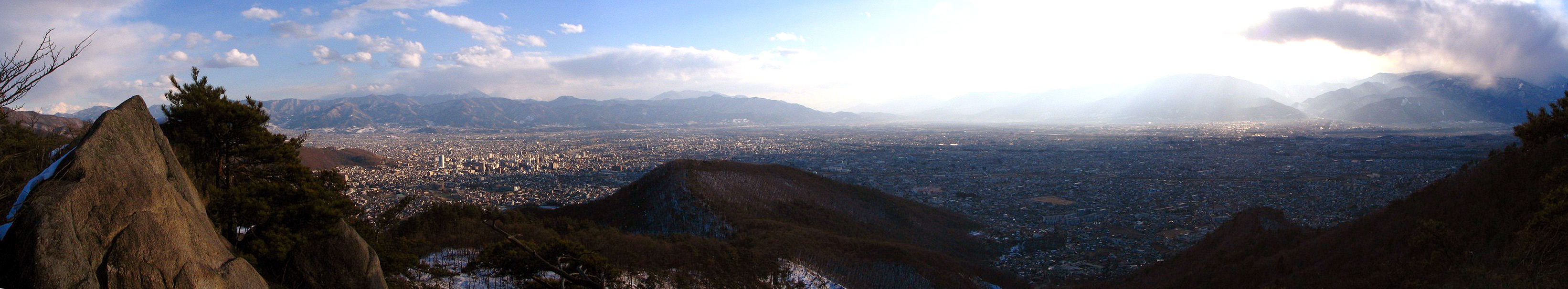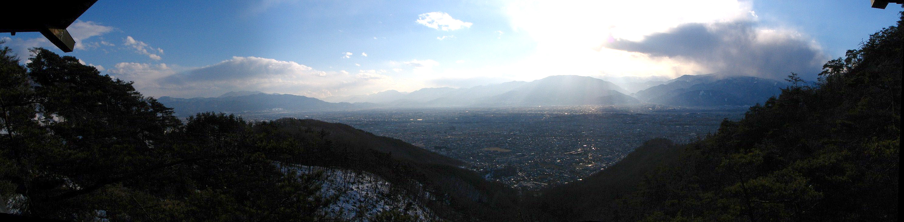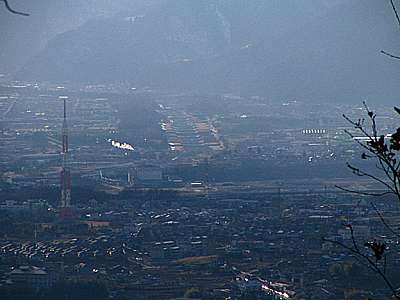 午後4時13分 展望台へ到着。 ここからは甲府盆地を一望する。 |