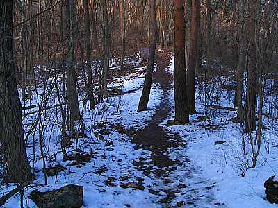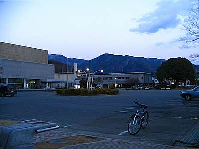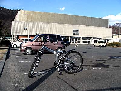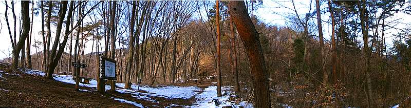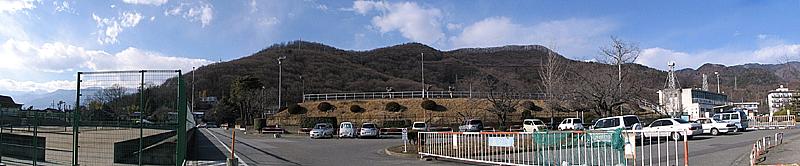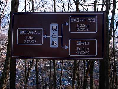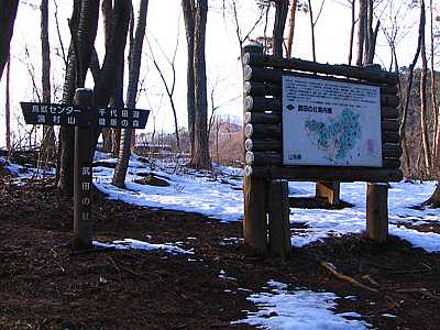| 2008年2月7日 降雪から4日。 残雪は気になったものの、久しぶりに湯村山446mから千代田湖への遊歩道を歩いてみることにした。 午後2時50分 緑が丘スポーツ公園の県営体育館駐車場へ自転車を停める。 午前中は非常に良い天気だったのだが、昼過ぎから西の空に雲がかかりだしてきたのが少々残念だ。