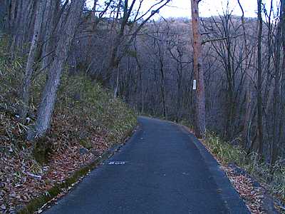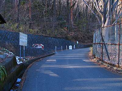 午後2時51分 尚古園へ続く道を入る。 湯村山への登り方は幾つも在るが、緑が丘側からだとここが最も一般的だ。 ちなみにこの道そのものは尚古園で行き止まる。 敷地内は関係者以外立入禁止となっているので、ここから先は車輌では行かない方がいいかもしれない。 |