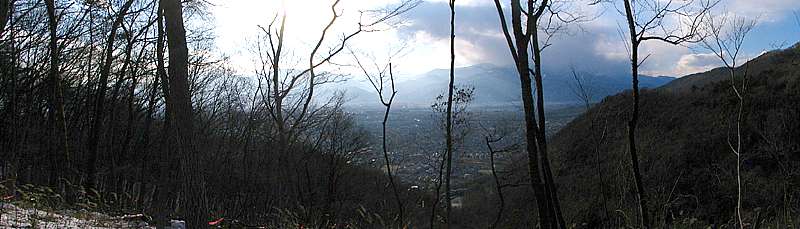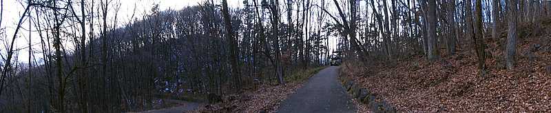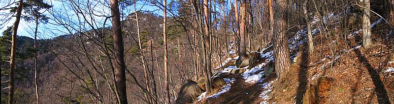 | 午後3時05分 遊歩道の入り口から500m地点。 盆地の景色も広がりだし、標高も徐々に上がってきた。 |