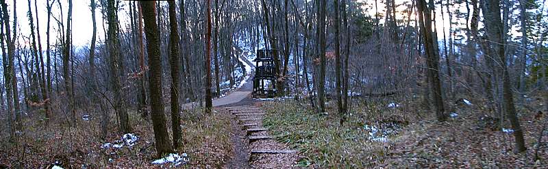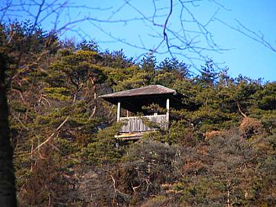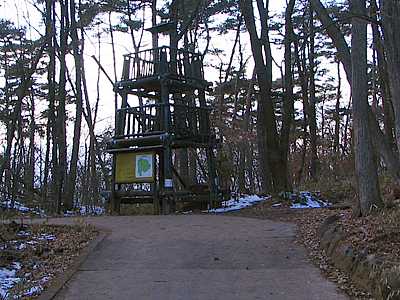 | 午後4時06分 堂ノ山の展望台が見えてきた。 こんな場所によくも展望台を建てたものだ。 当然のことながら荷揚げは人手によって運び上げたのだろうから、その苦労は大変なことだったに違いない。 |